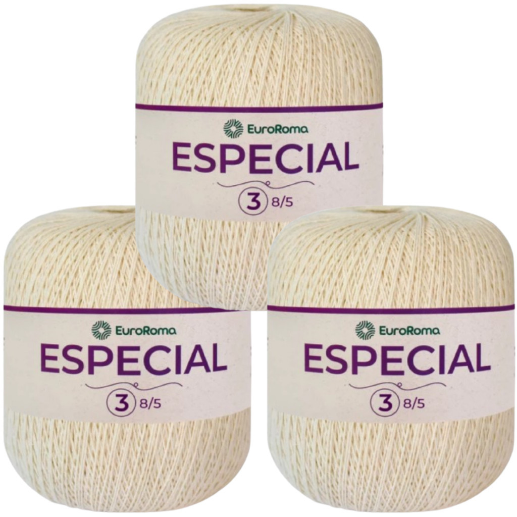 Kit 3 Barbante Fio 3 Especial 1400m 369 TEX 8/5 Crochê Tricô Decoração Sousplat Amigurumi EuroRoma