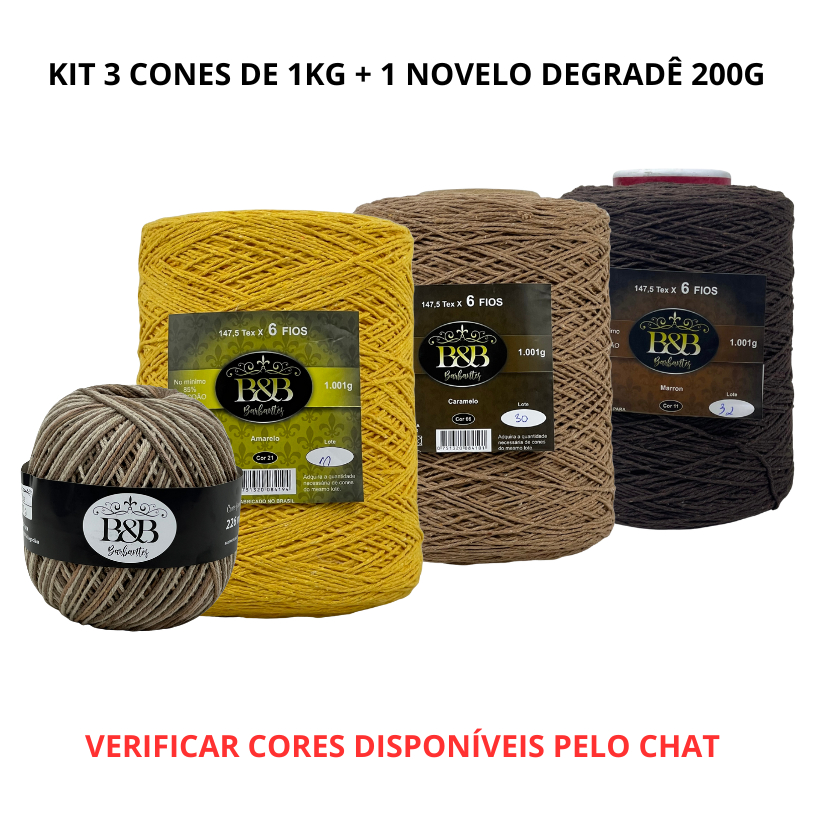 KIT 3 Barbantes B&B 1KG/6 ou 8 Fios + 1 Novelo Degradê 200gr - Escolha suas Cores