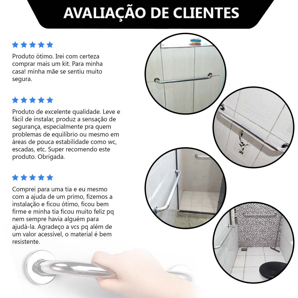 Este é um anúncio da ROLKEN FERRAMENTAS, que atua há mais de 8 anos no comércio online. Confira algumas vantagens de comprar na ROLKEN - Temos CNPJ, somos uma empresa consolidada - Emitimos Nota Fiscal Eletrônica - Postamos sua encomenda no mesmo dia ou NO MÁXIMO no próximo dia útil LEIA COM ATENÇÃO TODO O ANÚNCIO ANTES DE FINALIZAR A COMPRA ====================================================================== BARRA DE APOIO 60CM - Kit 3 Peças ====================================================================== Seu banheiro não precisa ser apenas funcional, mas também seguro e confortável para todos. A Barra de Apoio para Banheiro é um acessório essencial projetado para trazer tranquilidade às pessoas idosas, com mobilidade reduzida ou para aqueles que simplesmente buscam uma experiência de banho mais segura e relaxante. ESPECIFICAÇÕES - Material: INOX - Capacidade de peso: 110 kg - Comprimento: 60 cm - Diâmetro: 2,5 cm - Tipo de Fixação: Parafusos USADO EM - Banheiros - Box - Corredores - Quartos - Clinicas - Hospitais ITENS INCLUSOS 3 - BARRAS DE APOIO DE 60CM 18 - PARAFUSOS E BUCHAS PARA INSTALAÇÃO Por que escolher nossa Barra de Apoio? - Qualidade Premium: Fabricada em aço de alta qualidade, nossa barra é resistente à ferrugem e corrosão, garantindo durabilidade a longo prazo. Você pode confiar em sua qualidade excepcional. - Suporte Robusto: Com capacidade para suportar até 110 kg, você terá total confiança ao usar nossa barra como apoio. Ela proporciona estabilidade e segurança, tornando o momento do banho muito mais tranquilo. - Design Elegante: Nosso compromisso com o estilo é tão forte quanto nossa preocupação com a segurança. A barra apresenta um design elegante e discreto, que se integra perfeitamente ao ambiente do seu banheiro, sem comprometer a estética. - Instalação Descomplicada: A instalação é rápida e simples, permitindo que você a fixe com facilidade em qualquer parede do banheiro. Não são necessárias habilidades avançadas em instalação; nossa barra é pensada para se adaptar à sua rotina.