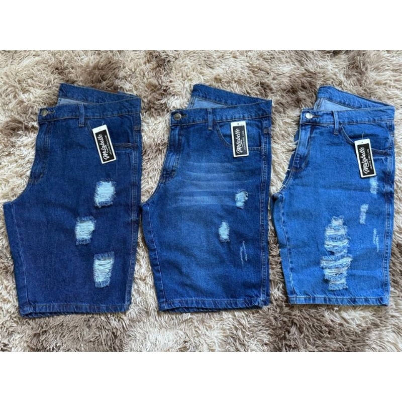 KIT 3 Bermuda Masculina Rasgada Jeans Destroyers