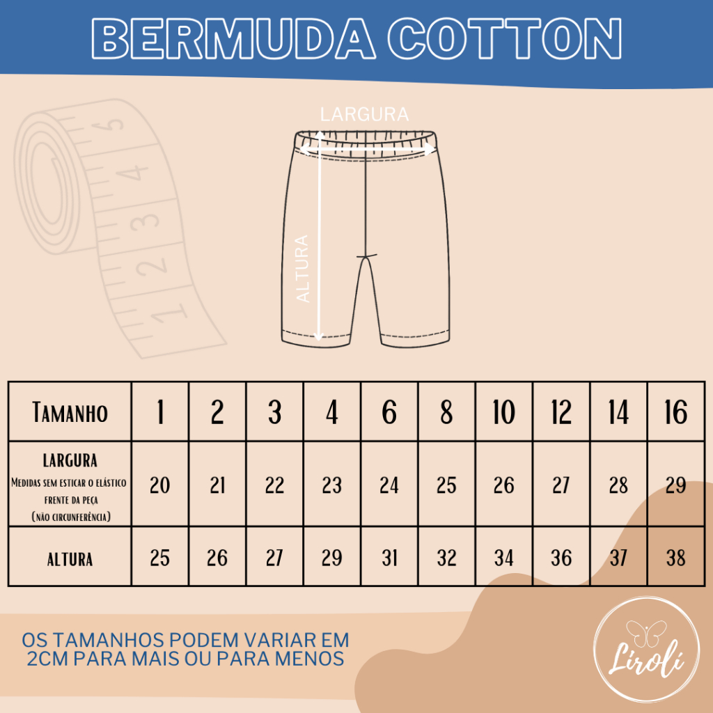 Obrigada por escolher a Lirolí Kids :) Bermuda linda, de Cotton, super confortável para o dia a dia na escola. Não fica transparente! Kit com 3 bermudas femininas estilo ciclista na cor azul marinho. Modelo Feminino. Disponíveis nos tamanhos 1 ao 16. TEMOS TODOS OS PRODUTOS A PRONTA ENTREGA E O ENVIO É IMEDIATO! ENVIAMOS PARA TODO O BRASIL. SERÁ ENVIADO NO TAMANHO SELECIONADO. Evite devoluções, confira nossa tabela de tamanhos disponível no rolo das fotos. ________________________________________ ESSE KIT CONTÉM: 3 bermudas femininas Cor: azul marinho, preto, azul royal, verde, vermelho, cinza escuro, mescla, pink e rosa. Composição: 96% algodão / 4% elastano Cintura: com elástico