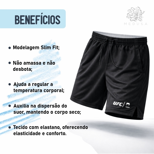 Kit 3 Bermudas Dry Fit UFC Masculina Leve, Confortável Tecido Respirável Corrida Treino