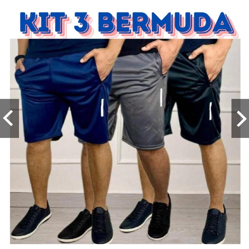 KIT 3 BERMUDAS MASCULINA ACADEMIA SHORT DRY FIT TREINO PRAIA/CASUAL REFLETIVO