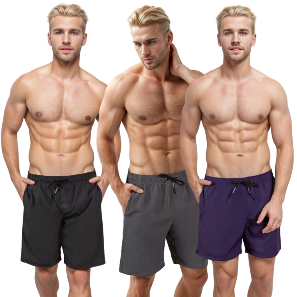 Kit 3 Bermudas Masculinas Lisas Tactel Academia Piscina Praia Caminhada