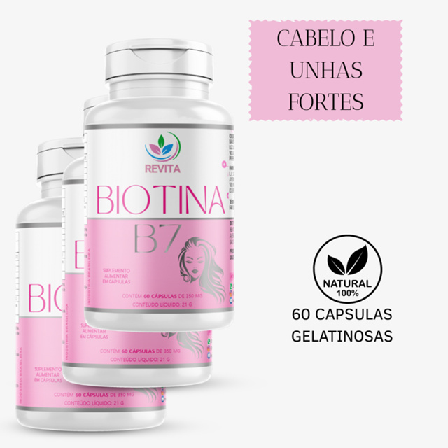kit 3 Biotina B7 60 Cápsulas Gelatinosas crescimento Cabelos Unhas Pele Fortes Vitaminas