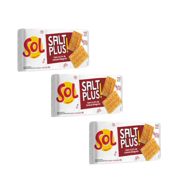kit 3 biscoito sol salt plus original 360g