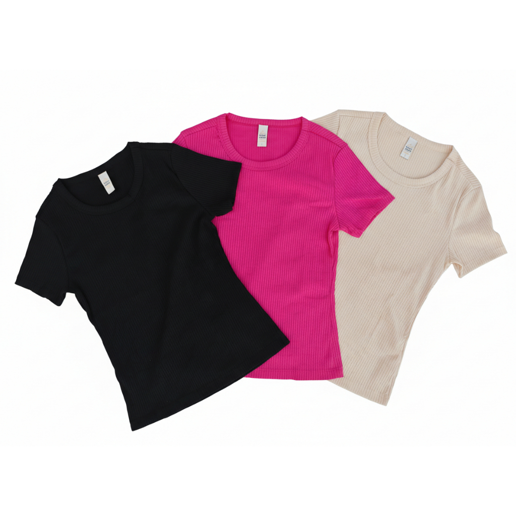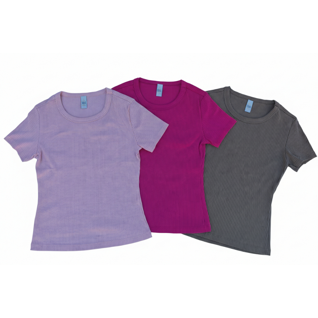 kit 3 Blusa Baby Look Canelada premium Gola Redonda t-shirt de Manga Curta