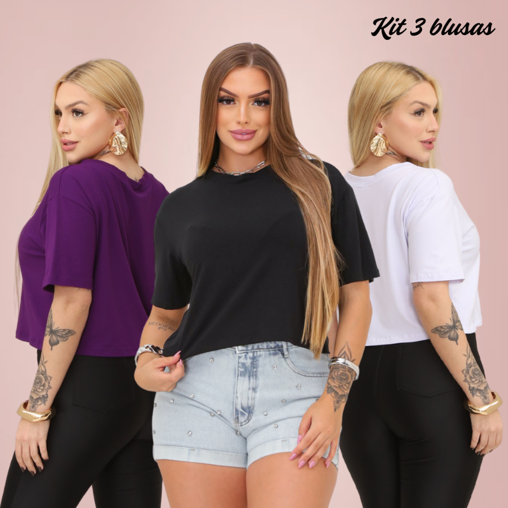 | KIT 03 Baby Tee Feminina - Blusa Slim Fit Manga Curta - Blusa de Co... | R$ 44,99 | 50% | 4.8/5 | 7.3 mil |