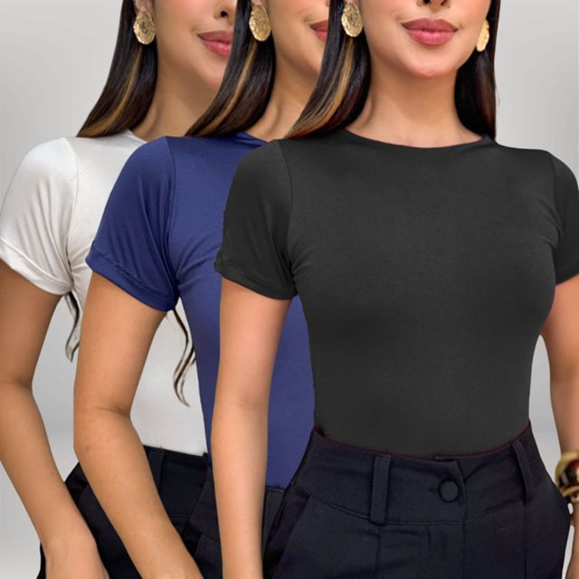 Kit 3 Blusa Feminina Suplex Manga Curta Baby tee