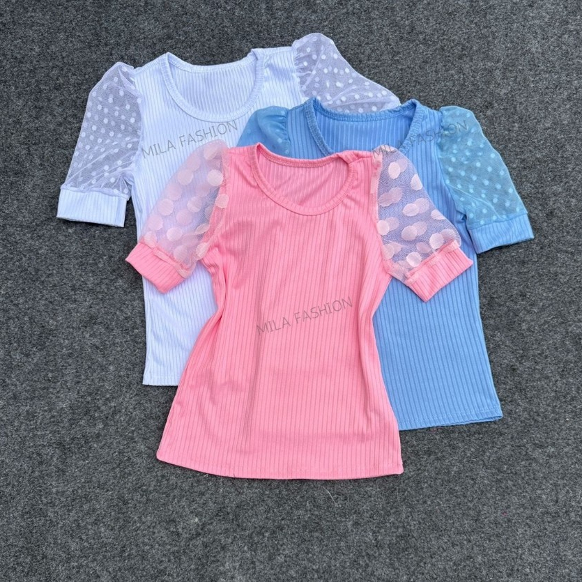 kit 3 Blusa Infantil Manga Tule Princesa Bufante /Blusinha Tule Canelada Manga Curta