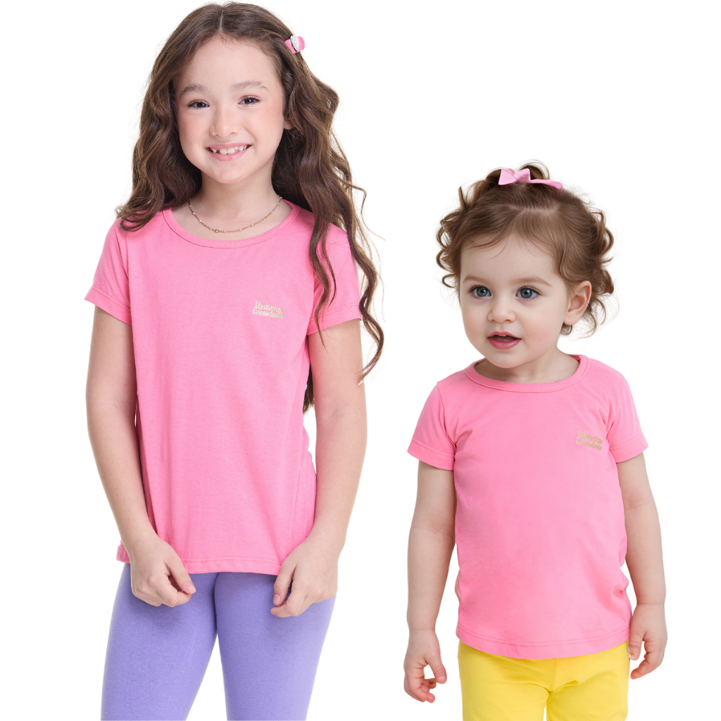 Kit 3 Blusa Manga Curta Infantil Bebê Menina 100% Algodão Lisa Básica