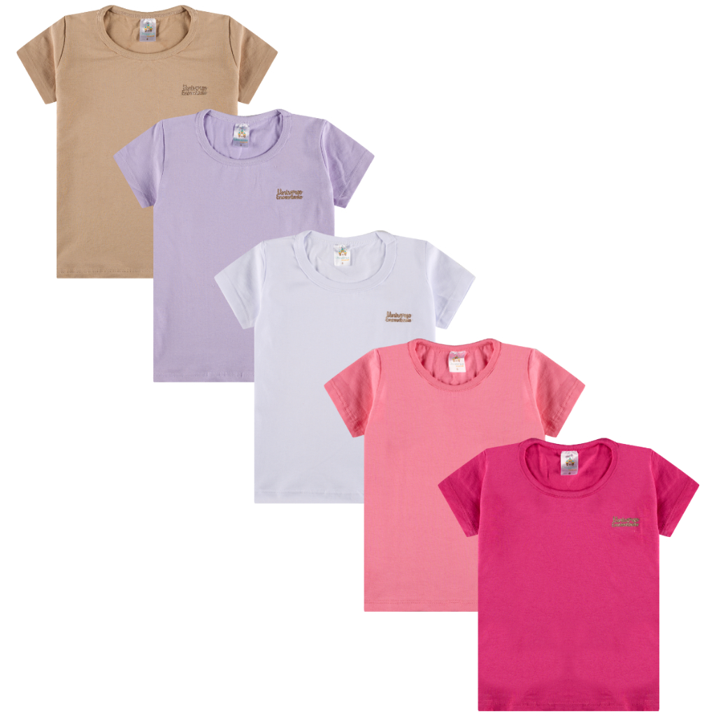 Kit 3 Blusa Manga Curta Infantil Menina 100% Algodão Lisa Basica