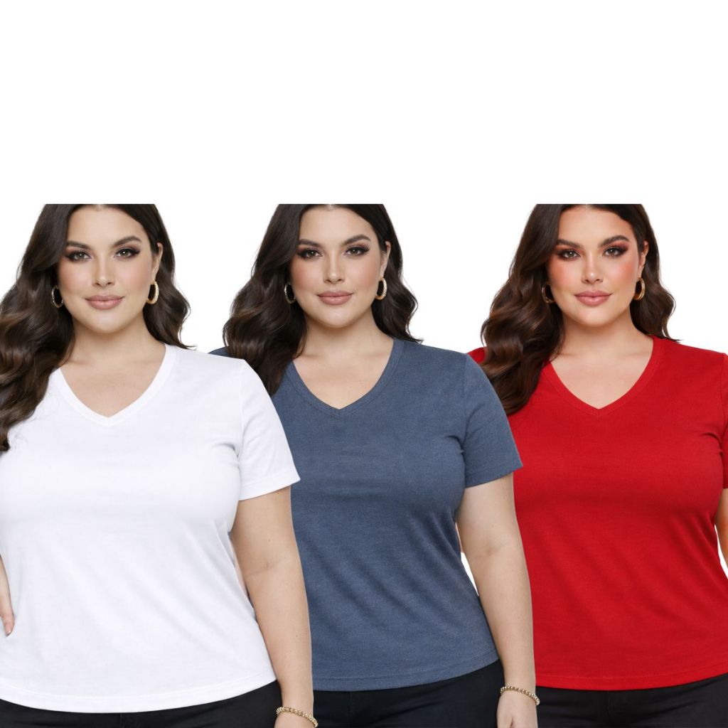 kit 3 blusa plus size feminina decote v manga cuta confortavél dia a dia tecido leve camisa Basica