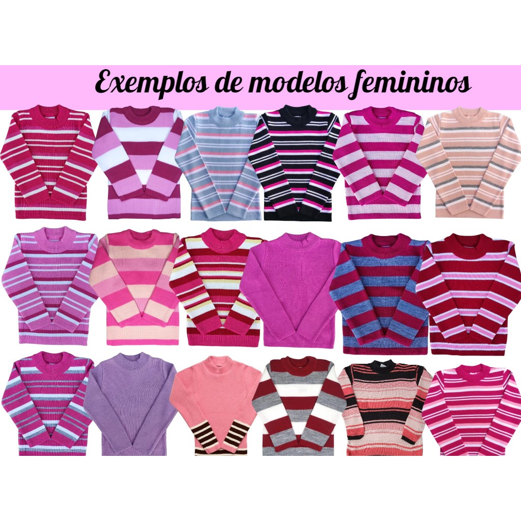 Kit 3 Blusas de Lã Tricot Infantil Juvenil Feminina Masculina Inverno