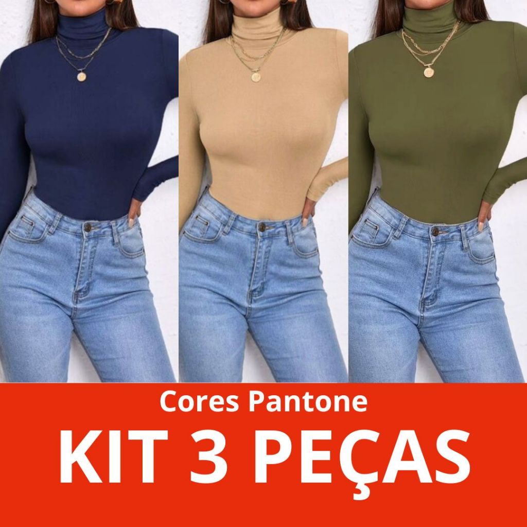 KIT 3 Blusas Feminina Cacharrel Gola Alta Manga Longa Suplex Segunda Pele Termica Elegante Estilosa