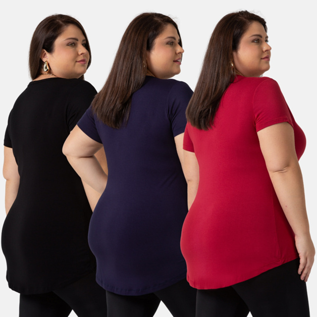 Kit 3 Blusas Femininas Plus Size Tampa Bumbum Mullet Alongada Verão 1126-KIT3-C1
