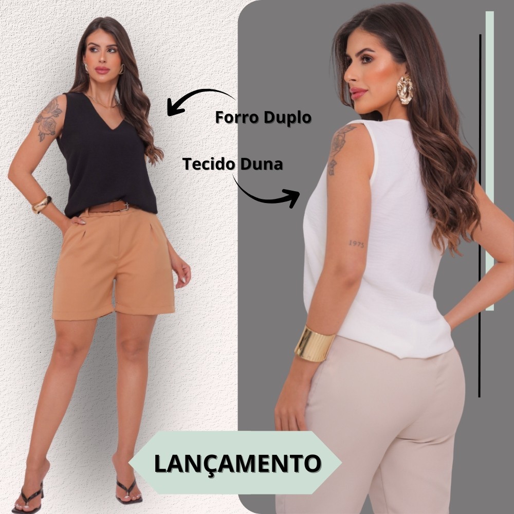 Kit 3 Blusas Regata Feminina Alça Larga Duna Premium Decote V Soltinha