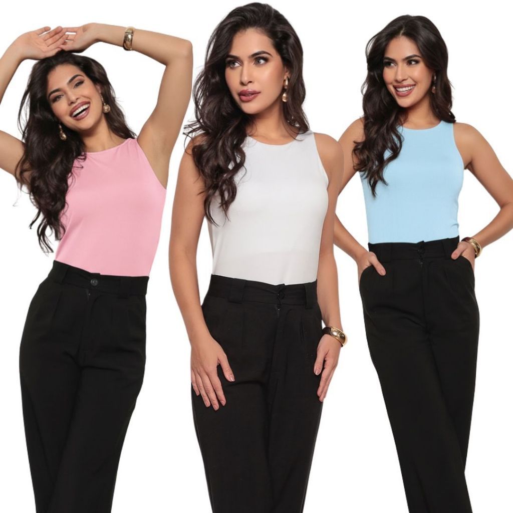 KIT 3 Blusas Regatas Casual Cores CANDY Basica Suplex Duplo Blusa Feminina Blogueira Tendencia