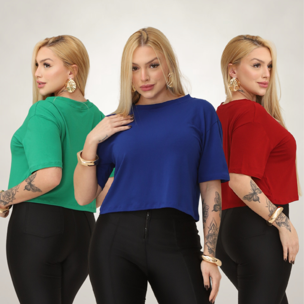 Kit 3 Blusinhas Feminina Estilosa Casual Festa Lisa Verao
