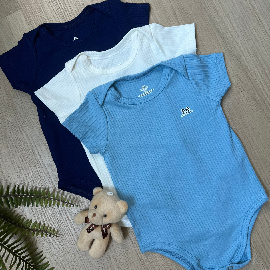 Kit 3 Body Bebê Infantil Menino Com Manga Menina Macacão Malha Canelada Confortável Liso e Estampado