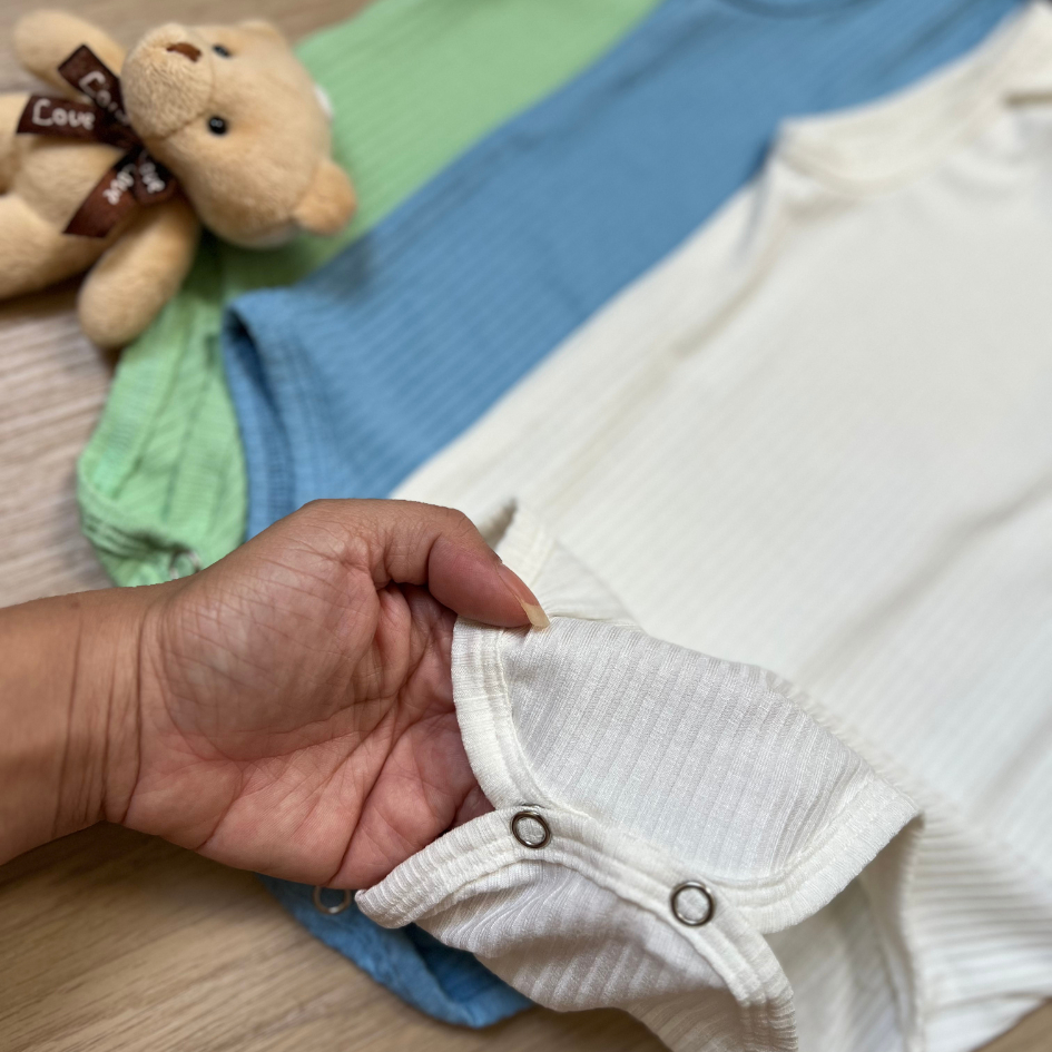 Kit 3 Body Bebê Malha Canelada Menino Menina Neutro Super Macio Liso e Estampado