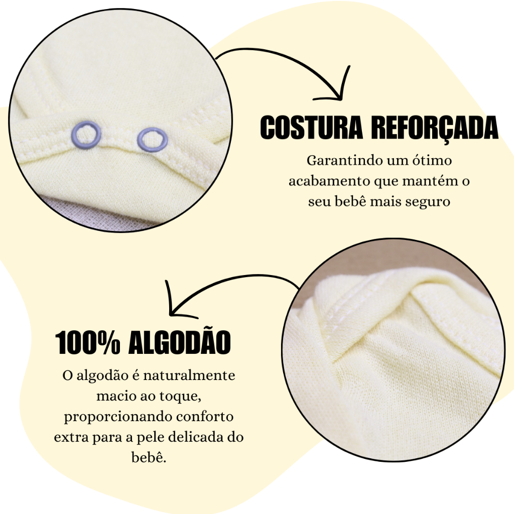 👚👕 Body Infantil Manga Longa 👚👕 👶 Apresentamos nosso Kit com 3 Bodies para Bebê de Manga Longa, uma opção prática e essencial para o enxoval do seu pequeno(a). Cada body é confeccionado com tecido macio e respirável, garantindo o conforto do bebê durante todo o dia. Com mangas longas, são ideais para os dias mais frios, proporcionando liberdade de movimento e facilidade na troca de fraldas com fechamento entre as pernas. 👶 🔴 O que vem no kit? - 3 Body de cores para Meninos, Meninas ou Unissex. 🟢 Como escolho as cores? - Você pode escolher a opção para Meninos, Meninas ou Unissex, elas serão enviadas com muito carinho para seu filho ou sua filha! 📃 Especificações: - 100% Malha em algodão 📏 Tabela de Medidas: P - 0-3 MESES M - 3-6 MESES G - 6-9 MESES 🚿 Como prolongar a vida útil do produto? 🚿 - Lavar com temperatura máxima de 60° C. - Não alvejar. - Secar com temperatura baixa. - Passar com temperatura máxima de 150° C. - Não limpar a seco. 🤔 DÚVIDAS? - Entre em contato conosco pelo chat, será um prazer respondê-los, estamos sempre à disposição.