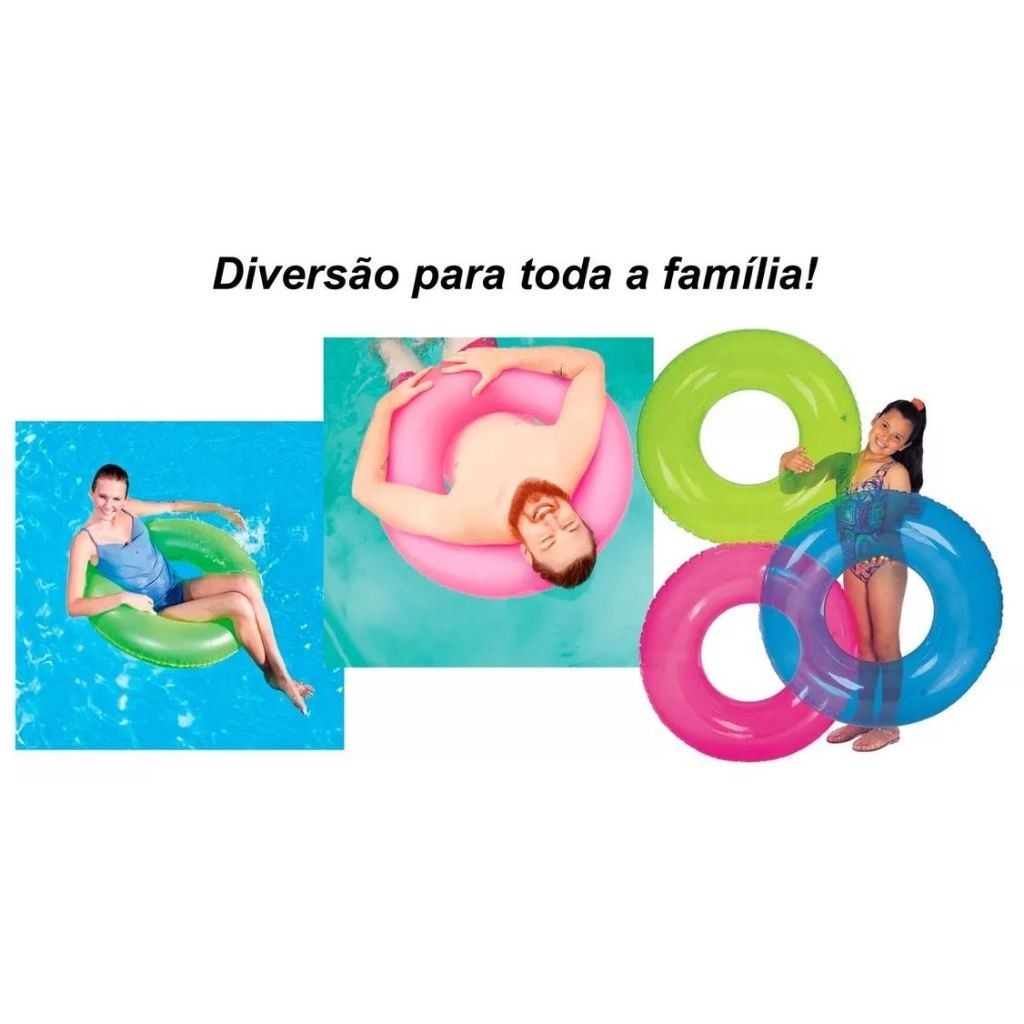 Kit 3 Bóia Inflável Circular Neon Redonda de Piscina 76cm para Criança e Adulto