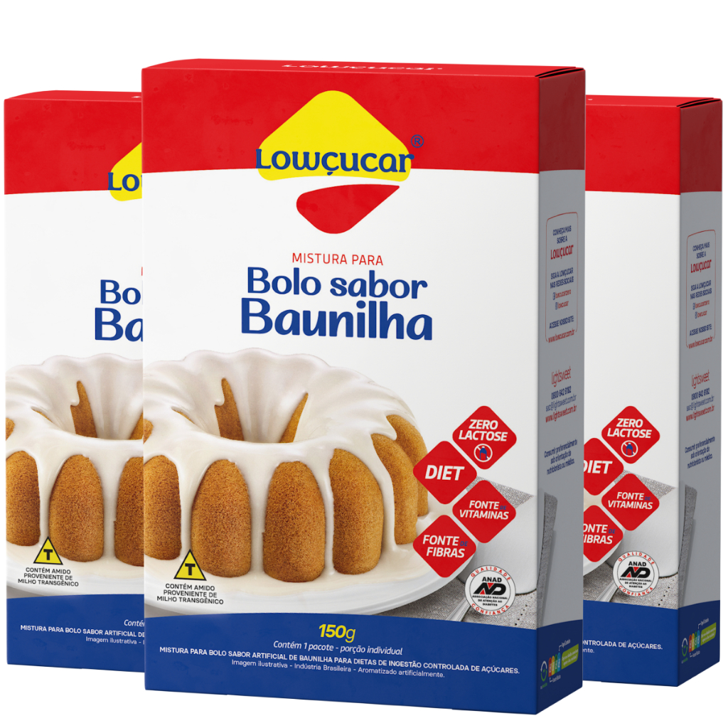 | Kit 3 Bolos de Baunilha, Doces Diet Zero Lactose, Fonte de Vitamina... este produto | R$ 39,58 | 12% | 4.9/5 | 4 |