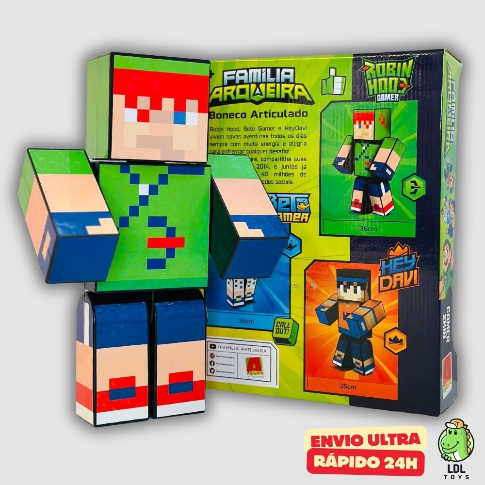 Kit 3 Bonecos Robin Hood + Hey Davi + Beto Gamer Familia Arqueira Articulado Youtuber 25cm