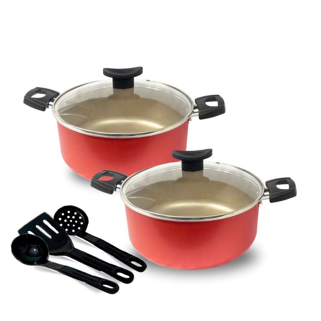 Kit 3 Caçarolas Teflon 16 18 e 20 Antiaderente com Talheres