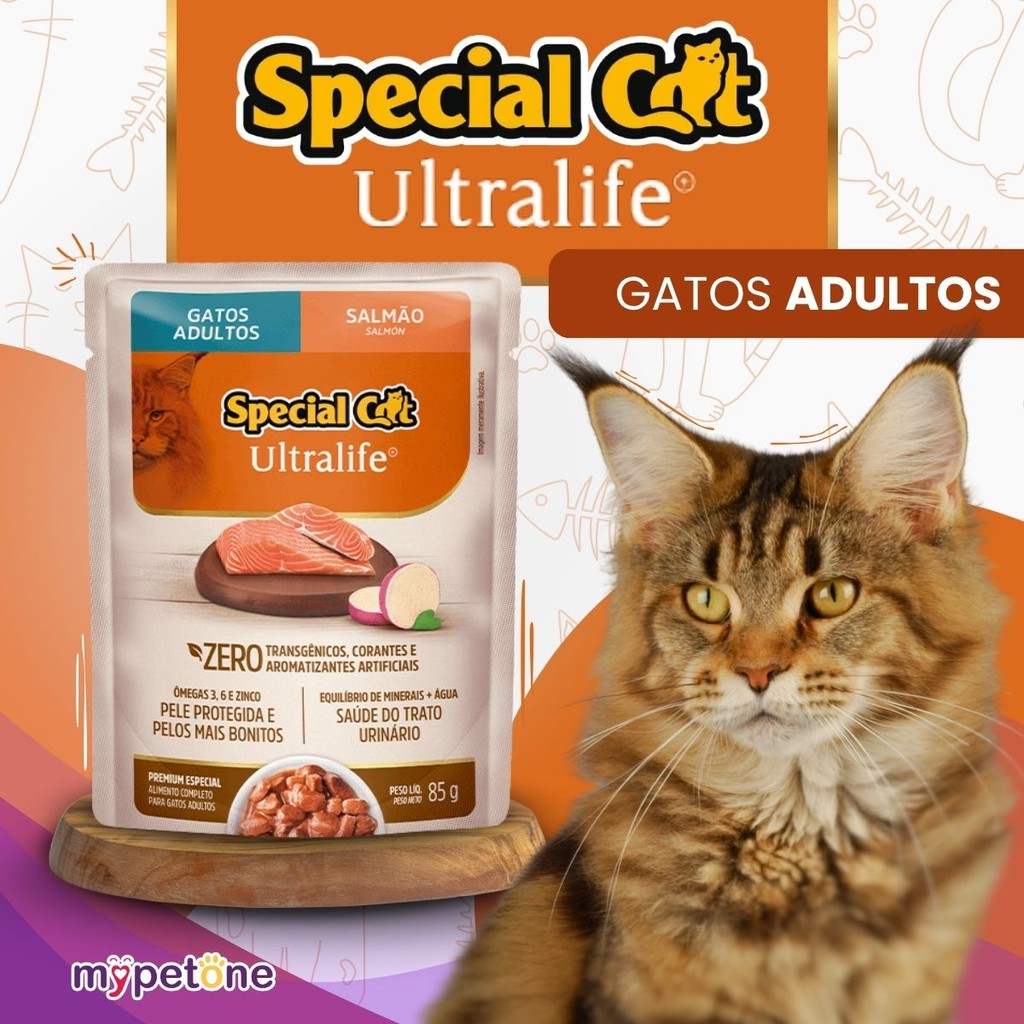 Kit 3 Caixa 12 Sachê Special Cat Ultralife Adultos Sabor Salmão 85g