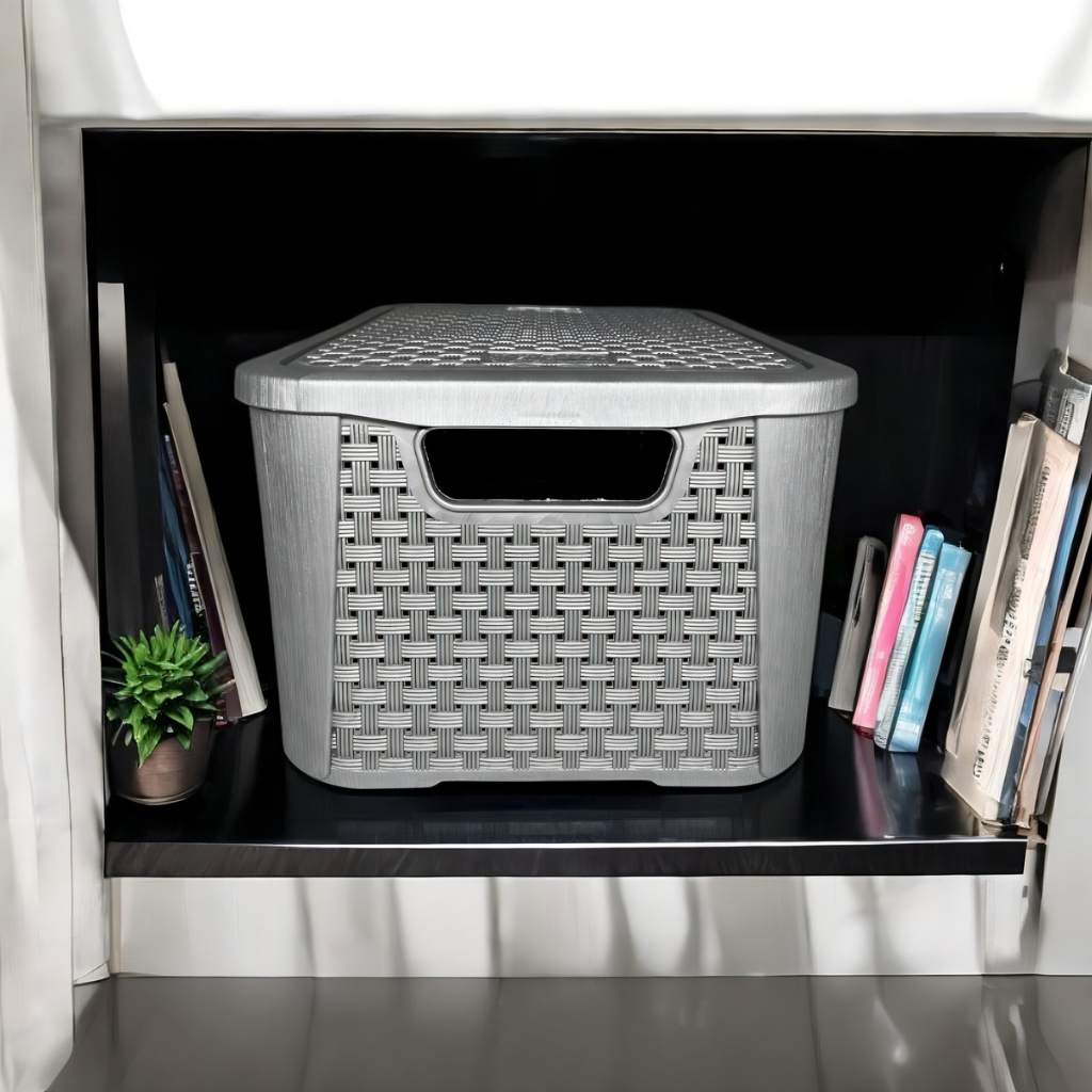 Kit 3 Caixas Organizadoras Rattan com Tampa Cinza 5,8L 8,8L 17L Empilháveis Multiuso