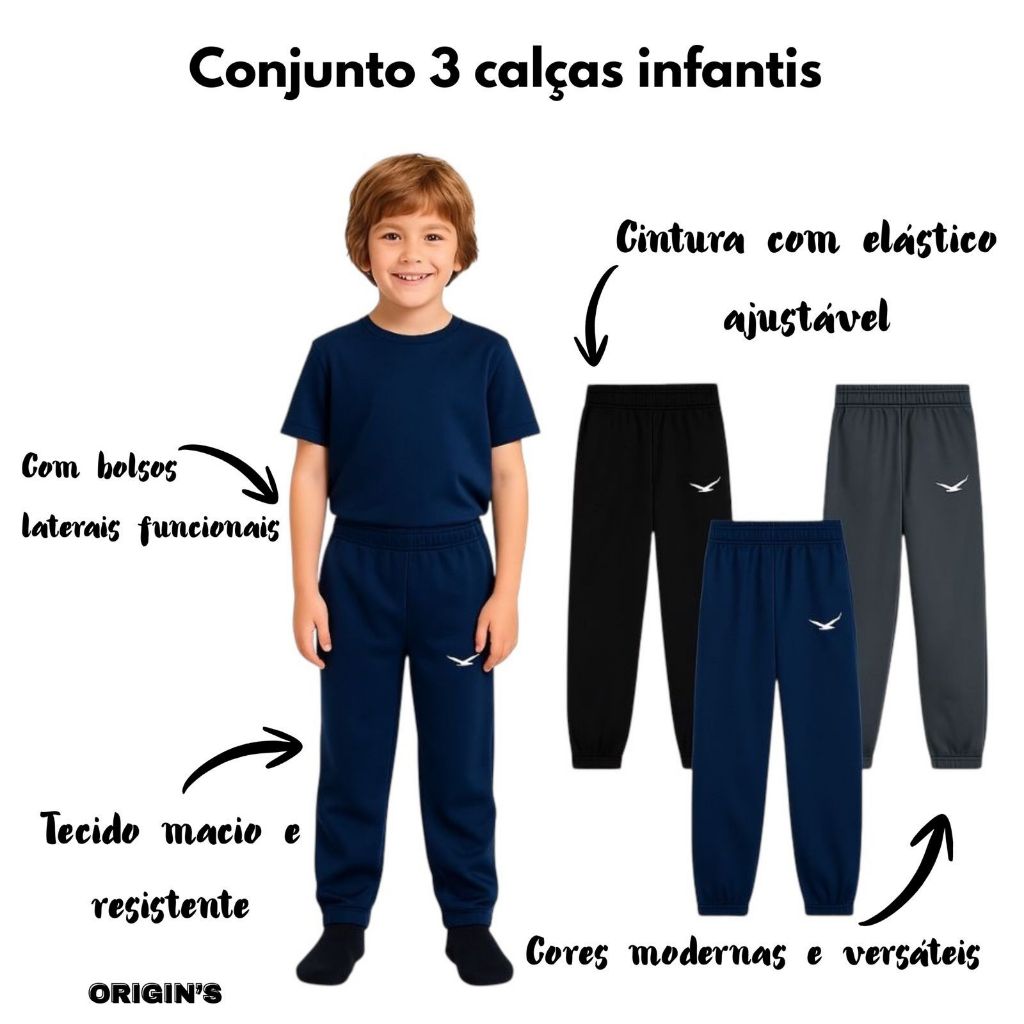 Aproveite o Kit Com 3 unidades uma Azul Marinho, Uma Preta e Uma Cinza!!!! ------------------------------------ATENÇÃO SELECIONE A QUANTIDADE COR QUE PRFERIR ---------------------------------------- ✨ Seu Filho Merece o Melhor do Estilo Urbano! ✨ Conforto, atitude e muita personalidade — tudo em uma só peça! Apresentamos a Calça Chimpa Infantil, pensada especialmente para quem quer unir estilo e liberdade em cada movimento. Com um design moderno e cheio de identidade, essa calça é perfeita para os pequenos que não abrem mão de conforto e autenticidade no dia a dia. 👖 Destaques da peça: Modelagem atual que valoriza o corpo sem limitar os movimentos Tecido resistente e confortável, ideal para a rotina ativa das crianças Estilo versátil: combina com camisetas, jaquetas e tênis — do casual ao streetwear Acabamento de qualidade com detalhes exclusivos que fazem a diferença no visual 📏 Tamanhos disponíveis: do 04 ao 16 Confira nossa tabela para encontrar o tamanho ideal. 🛍️ Garanta já a Calça Chimpa para o seu filho e leve para casa uma peça cheia de estilo, conforto e atitude! Enviamos rápido e com garantia de qualidade.