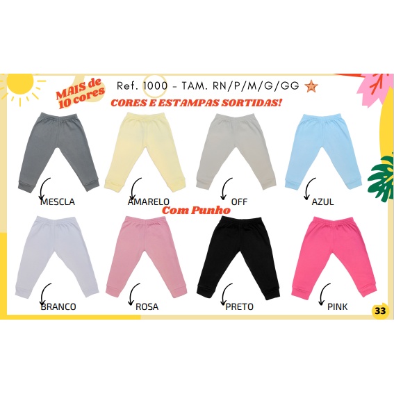Nossa Loja: Nosso objetivo é proporcionar para nossos clientes o melhor conforto e a melhor qualidade do mundo da moda atual, desenvolvido para crianças extremamente exigentes pois irão aproveitar a melhor fase de nossas vidas com nossos conjuntos com muito charme e glamour. 😱 ATENÇÃO, ATENÇÃO!!!!!! ➡️ Valor promocional até durarem o estoque!!!!! ➡️Estampas aleatórias, devido a grande rotatividade de cores e estampas!! ➡️ Envio Imediato!!!! ➡️Produtos diretamente de Fabrica!!!! ➡️Melhor Preço de Roupas Infantis!!! Descrição do Produto: Cores: Estampas separadas de forma aleatórias, mesmo Tamanho, mesclando cores masculinas ou femininas, será enviado 3 cores diferentes em seu Kit, Todas de ótima QUALIDADE e CONFORTO, Formando a diversão completa para os dias mais animados. Calça para bebê, também conhecido como mijão ou culote, com pés não reversíveis (vira pé). Algumas cores podem ser usadas como unissex. Peça perfeita para seu(sua) menino(a) ter um dia muito quentinho e confortável!! Disponível nos tamanhos /P/M/G/GG -Confeccionado em malha suedine algodão -Cós com elástico -Barra com punho em ribana -Leve e confortável Tabela de Medidas: Tamanho: P - Cintura: 16 cm X Comprimento: 35 cm Tamanho: M - Cintura: 17 cm X Comprimento: 37 cm Tamanho: G - Cintura: 18 cm X Comprimento: 40 cm Tamanho: GG - Cintura: 19 cm X Comprimento: 43 cm Sugestão: Tamanho: P veste bebê com até 3 meses Tamanho: M veste bebê de 3 a 6 meses Tamanho: G veste bebê de 6 a 9 meses Tamanho: GG veste bebê de 9 a 12 meses CUIDADOS: Atenção: Observar as medidas corretamente antes de Finalizar o seu pedido, Trocas somente por motivos de erro Fabricação ou Defeito do produto. Estampas Rotativas, Posso Variar Tamanhos? R: SIM, Somente deixar especificado no campo de mensagens ao vendedor, e seu kit será enviado conforme desejado. Não será enviado nenhuma estampa repetida, não será enviado nenhuma cor repetida, ótima qualidade e muito conforto para nossas crianças. <<<<<<<<<<<<<<<<<<<<<<>>>>>>>>>>>>>>>>>>>>>>>>>>> Confeccionado com tecido suave, de alta qualidade, super confortável, para seu dia a dia em casa, escola, e passeios, ideal para todos os momentos, não queremos apenas atender suas necessidades, mas sim, superar todas suas expectativas. Dúvidas estamos à sua disposição! Faça sua pergunta e responderemos prontamente. Agradecemos sua Visita, ótimas Compras!!!