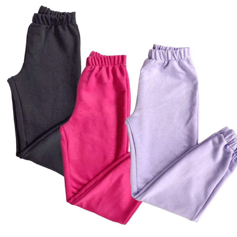 Kit 3 Calça Moletom Grosso Peluciado 100% Algodão Infantil Menino Menina 2 a 12 anos