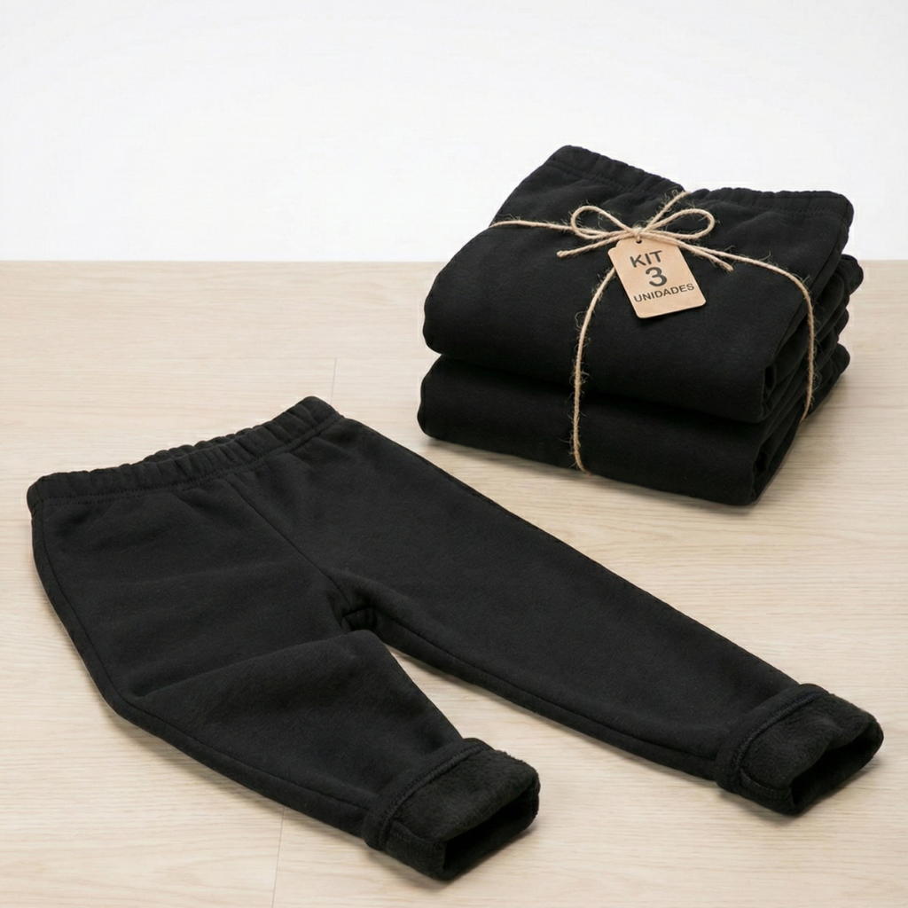Kit 3 Calças Infantis Moletom Peluciado Unissex Conforto Premium