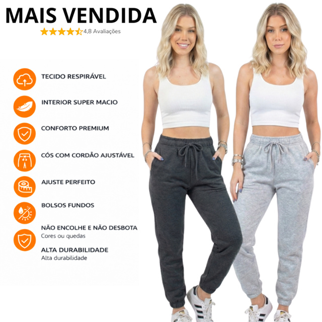 | Kit 2 Calças de Moletom de Algodão Peluciado Quentinha | R$ 102,62 | 21% | 4.7/5 | 14 |