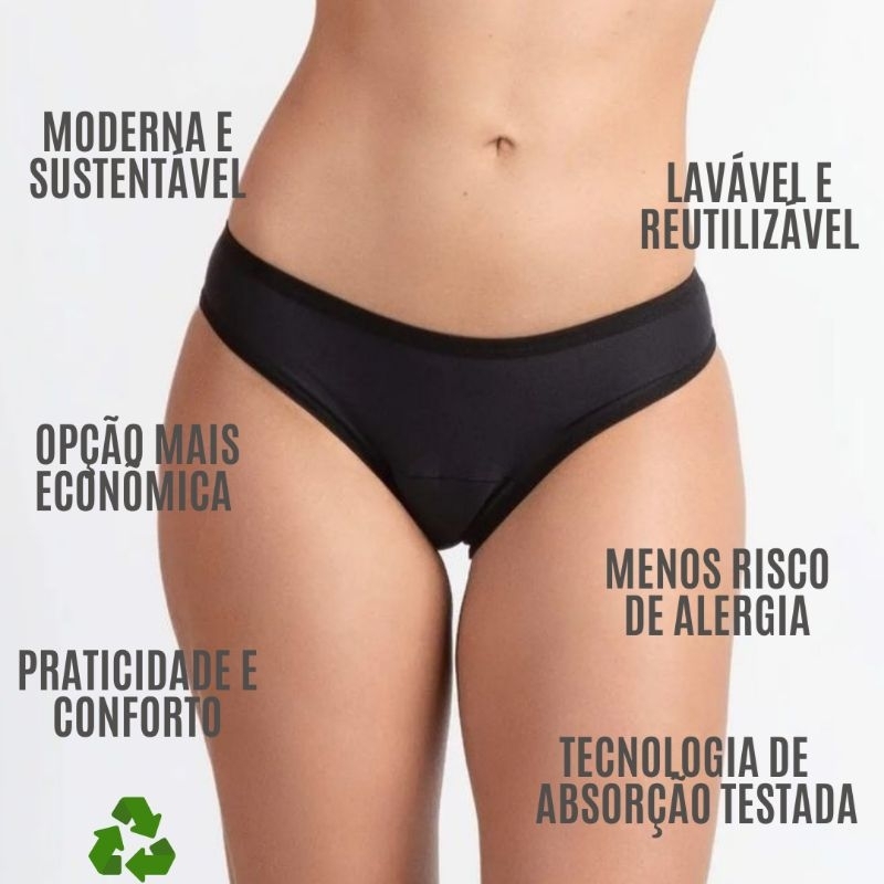 kit 3 Calcinha Absorvente Menstrual Feminina Reutilizável