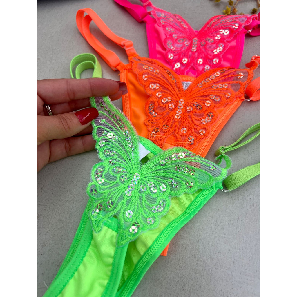 Kit 3 Calcinha Borboleta Fio Dental Sexy Neon Verão Sensual Conforto com Regulagem