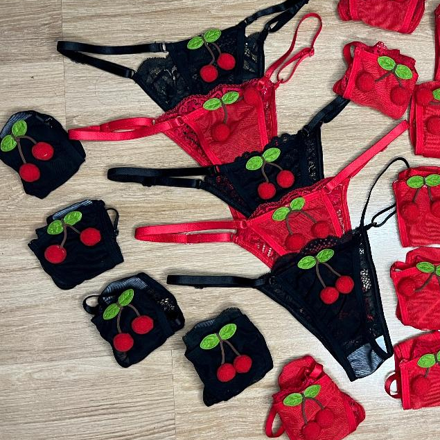 Tanga Cereja ---- TAMANHO ÚNICO - ALÇA COM REGULAGEM ---- ESSE KIT VEM COM 3 PEÇAS Peça detalhada com Renda tule transparente! Com um delicado aplique de cerejinha, garantindo um visual irresistível e descontraído. Sensual e divertida, essa calcinha é perfeita para quem adora unir estilo e ousadia no guarda-roupa íntimo. Garanta já a sua!