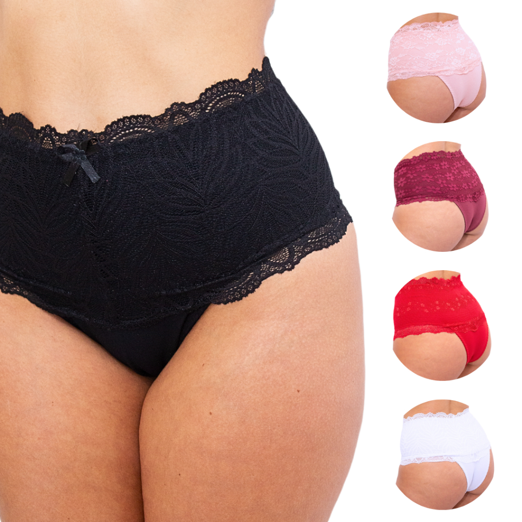 KIT 3 CALCINHA CINTA RENDA CÓS ALTO MODELADORA REDUZ MEDIDAS PÓS PARTO BARRIGA ZERO MATERNIDADE