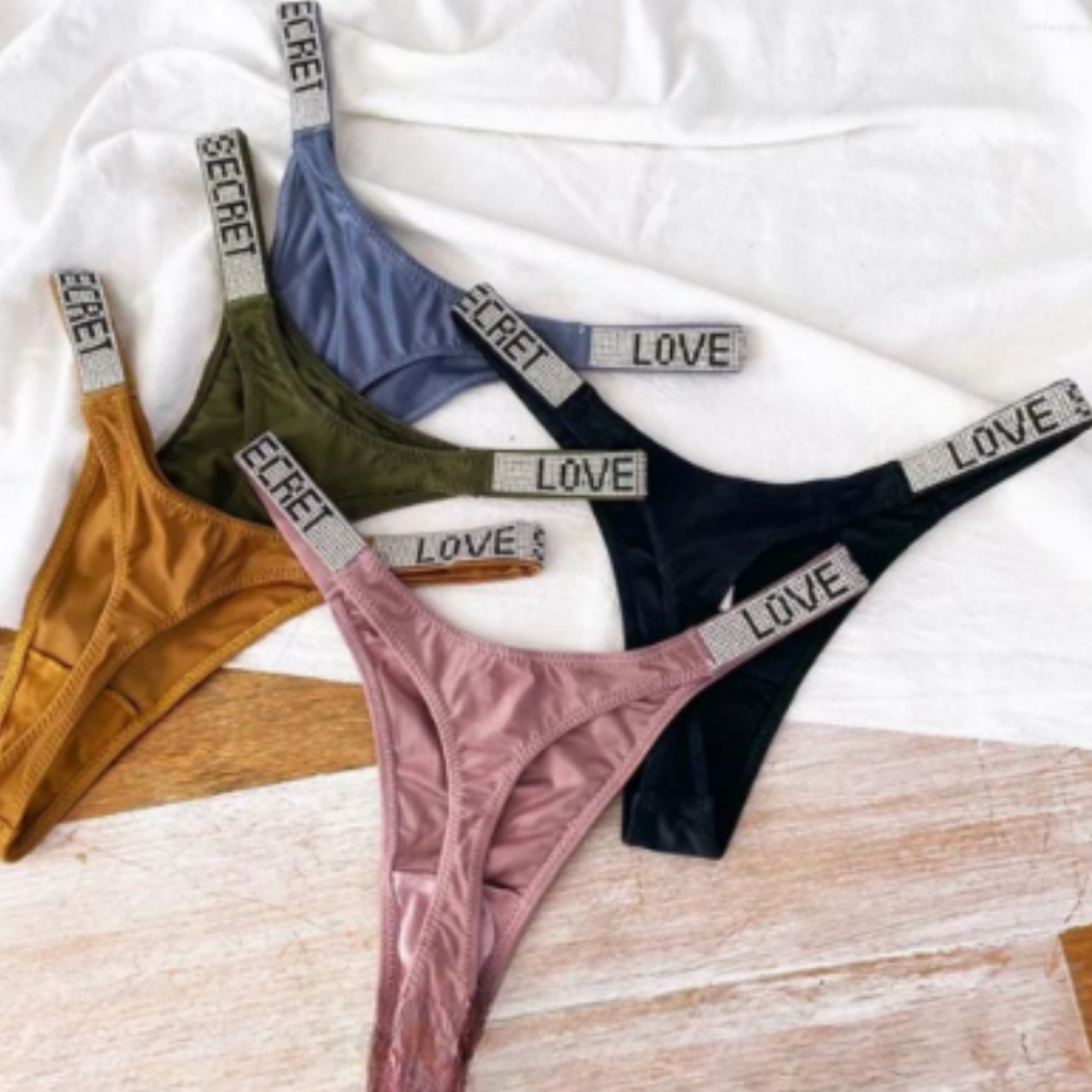 Kit 3 Calcinha Love Strass Cores Variadas