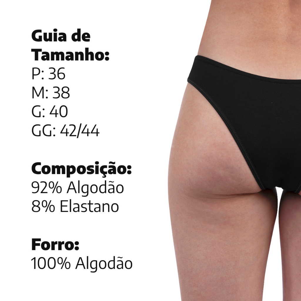 Calcinha Feminina Modelo Tanga A10, muito confortável, confeccionada com algodão, perfeita para todos os dias. Composição: 92% Algodão 8% Elastano Forro: 100% Algodão. Cós e pernas em elástico Guia de tamanho: P: 36 M: 38 G: 40 GG: 42/44 Ref.: A10 O Kit é enviado de forma sortida, podendo haver repetição de cores. A Compramais tem como missão desde 2013 proporcionar satisfação e qualidade para clientes em todo o Brasil. Trabalhamos com agilidade para garantir que seu pacote chegue com rapidez em suas mãos, no conforto do seu lar e sem precisar sair de casa! Temos um catálogo extenso de moda íntima que conta com itens femininos, masculinos e infantis. Ainda tem alguma dúvida? Nos faça uma pergunta! Compramais, paixão em moda íntima.