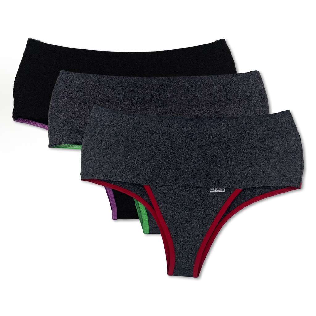 CALCINHA FITNESS C/ COMPRESSÃO P/ BARRIGA É uma calcinha modelo cós alto, duplo com a largura de 11 cm, fabricada no tecido POLIFITNESS, o original que garante compressão desejada para barriga sem perder o conforto que você espera pois tem 290 de gramatura, é bem mais grosso que a microfibra básica. Pensando na saúde feminina a calcinha é fabricada com forro malha 100% algodão que é antialérgico. Calcinhas embaladas individualmente . COMPOSIÇÃO Polifitness (90% poliéster - 10% elastano) OBS: Neste kit são todas cinza mescla com elásticos sortidos em lindas cores, branco, preto, chocolate, rubi, romance (rosa claro), amarelo, vinho, satin e tamy, desejando escolher cores e em mais de um tamanho no kit é possível, após a compra nos envie cores e tamanhos desejado. MEDIDAS: P / 36 á 38: Cintura 62-69, Quadril 87-95 M /40 :Cintura 70-77, Quadril 96-102 G /42: Cintura 78-85, Quadril 103-110 GG/ 44: Cintura 86-95, Quadril 111-120 PARA VER TODOS OS NOSSOS PRODUTOS ANUNCIADOS BASTA DIGITAR clickmaisbonita NO CAMPO DE PESQUISA DO SHOPEE