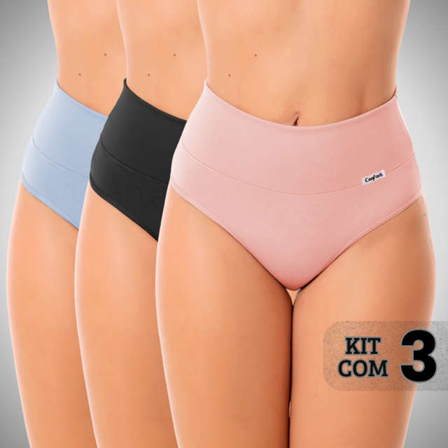 Kit 3 Calcinhas Cós Alto Pós Parto Gestante Cintura Alta Ajuste Perfeito Modela o Corpo