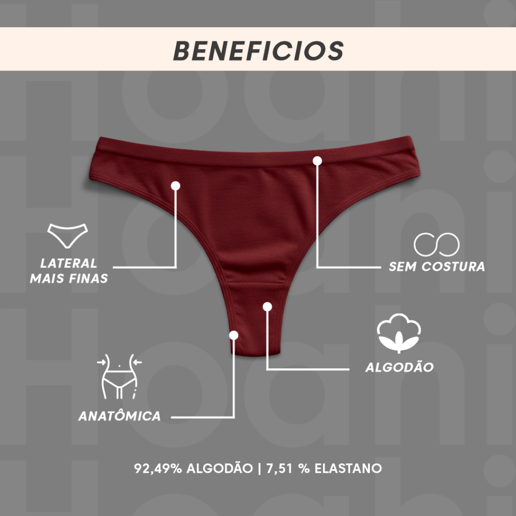 Kit 3 Calcinhas Tanga Hoahi Algodão