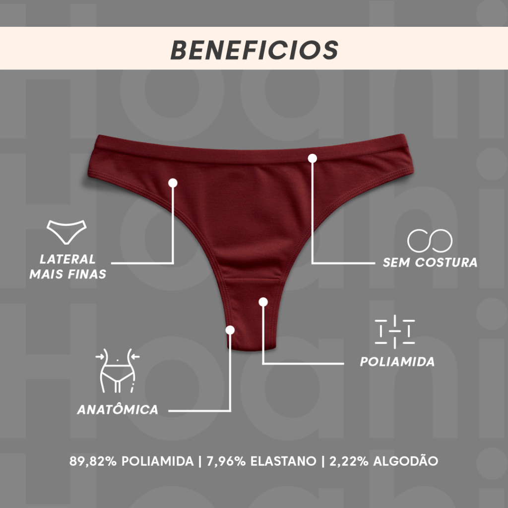 KIT 3 CALCINHAS TANGA HOAHI PREMIUM POLIAMIDA Sinta o conforto e a qualidade das Calcinhas Hoahi Premium Tanga, confeccionadas em poliamida macia e respirável com toque sedoso. Cada kit vem com 3 calcinhas, perfeitas para o dia a dia, garantindo ajuste ideal ao corpo, liberdade de movimento e sensação de frescor o tempo todo. VANTAGENS DO PRODUTO: Produzidas em poliamida premium de alta durabilidade Toque leve, macio e respirável Modelagem anatômica que valoriza o corpo Cós confortável que não marca a pele Secagem rápida e excelente absorção Design moderno com acabamento impecável VOCÊ RECEBERÁ: Kit com 3 Calcinhas Tanga Hoahi Premium em Poliamida Composição: 89,82% poliamida | 7,96% elastano | 2,22% algodão DESCRIÇÃO DOS KITS (VARIAÇÕES): Kit 1: Branco | Preto | Bege Kit 2: Salmão | Marrom | Lilás TABELA DE MEDIDAS: P – Manequim 36-38 / Quadril 27 - 29 cm M – Manequim 40-42 / Quadril 29 - 31 cm G – Manequim 44-46 / Quadril 30 - 32 cm GG – Manequim 48-50 / Quadril 32 - 34 cm Se estiver entre tamanhos, opte pelo maior. CUIDADOS NA LAVAGEM: Lavar à mão ou na máquina, até 30°C Não usar alvejante Secar à sombra Não passar com ferro Não limpar a seco ATENÇÃO! Confira o TAMANHO e VARIAÇÃO antes de finalizar a compra Produto com nota fiscal Somos os fabricantes oficiais da marca Envio em até 24h úteis Produzida em poliamida: toque macio e secagem rápida Tecnologia sem costura: conforto sem marcar sob a roupa Ideal para o dia a dia e para usar com roupas mais justas Tecido respirável que mantém a pele fresca Caimento anatômico que se ajusta perfeitamente ao corpo Estilo minimalista e funcional, com a qualidade Hoahi