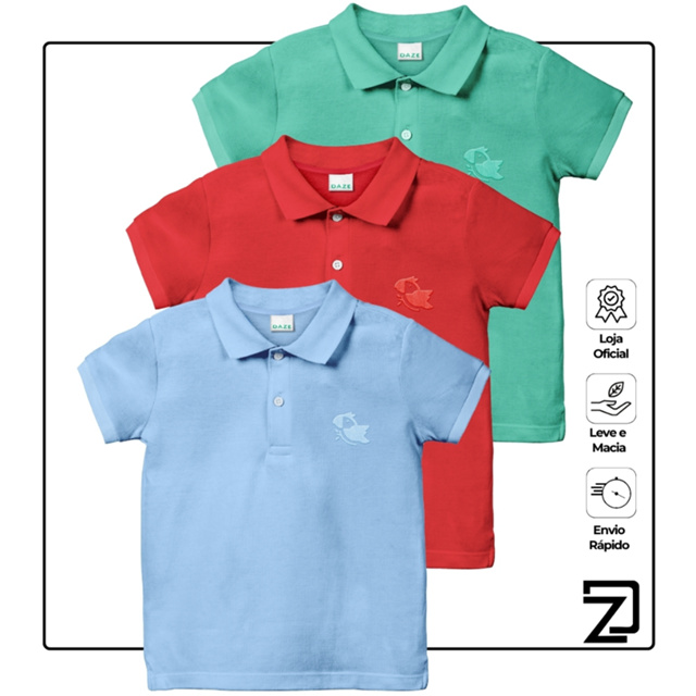KIT 3 Camisa Básica Polo Infantil manga curta