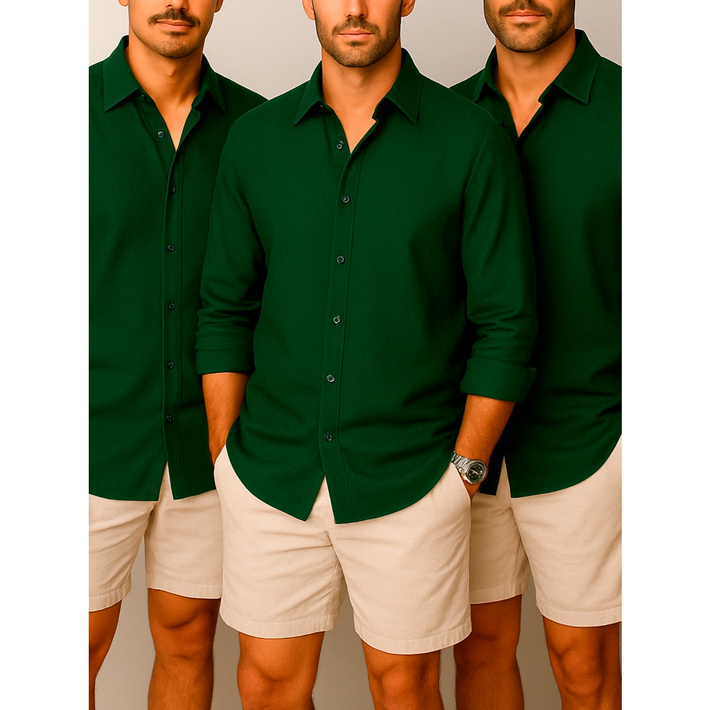 Kit 3 Camisa de linho Masculina para verão praia manga curta fresca moda