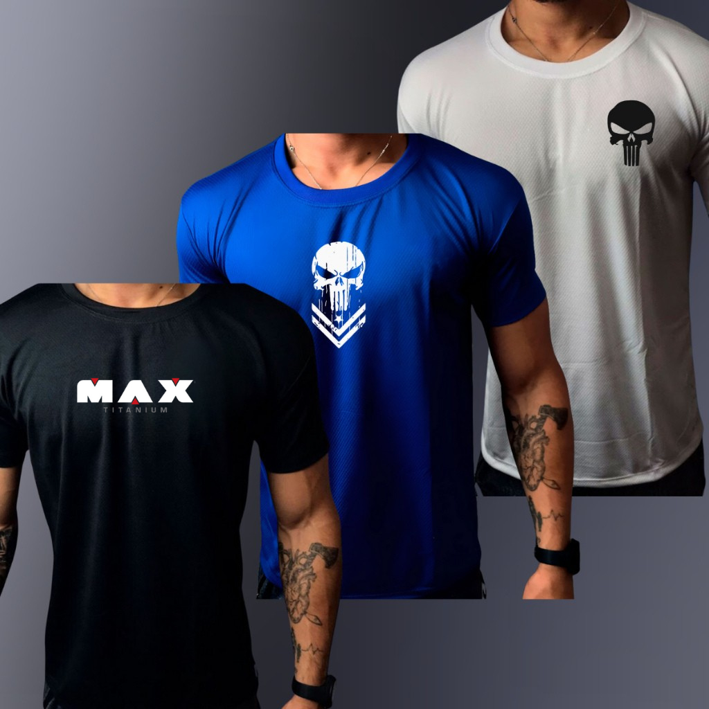 Kit 3 Camisa Dry Fit JUSTI Mix Suplemento esportiva academia Treino